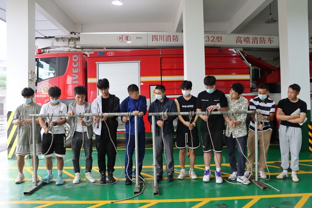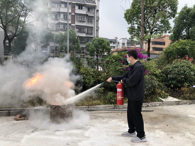 本次学习采用理论加实操的方式进行,消防人员讲解了灭火器的结构、使用方法、维修保养等,用简洁明了的四个字“提、拔、抬、压”总结了灭火器使用方法;并操作灭火器模拟扑灭火灾危险源,灭火器材的使用技巧和要领,展示了三种洁绳法,以便在危险情况下进行自救。