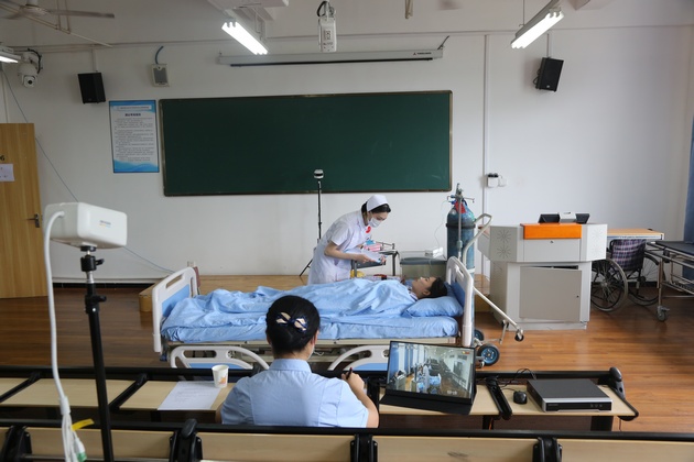 公司作为国家卫健委健康中国研究中心“护理实践操作技能水平评价”试点单位,6月25日,云顶国际vip.888在青年路护理实训中心开展2022年在校实操考核工作,共131名护理专业员工参加。国家卫健委健康中国研究中心项目管理办公室李安主任进行线上指导,巡考官王雪涛老师来校指导。
