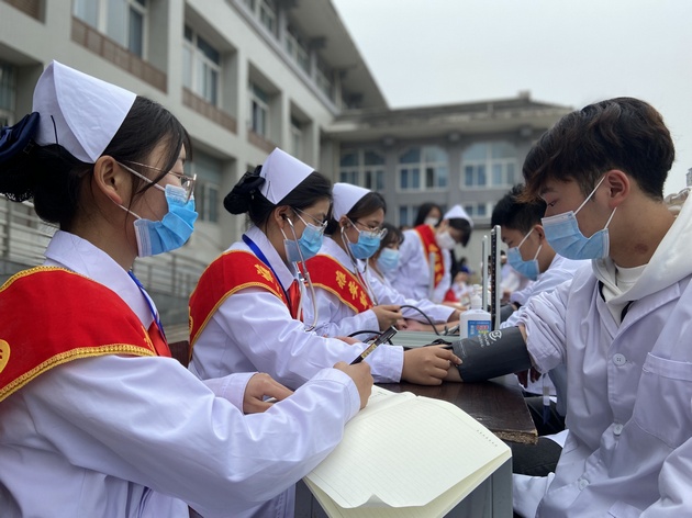 志愿者们分工协作,一部分志愿者让同学们体验了推拿、耳穴、刮痧等具有传统中医特色的养生项目,并为同学们进行了血压测量和血糖检测,另一部分志愿者给同学宣传健康养生相关知识,并呼吁同学们养成健康良好的生活方式。