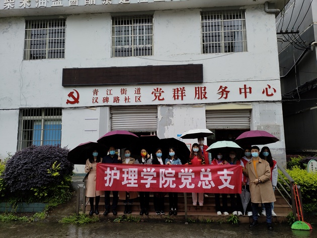 4月15日,云顶国际vip.888南丁格尔志愿服务队在爱国苑小区开展“服务社区,文明创城”为主题的志愿服务活动,护理公司党总支书记杨泽刚带队,7名教师党员、10名志愿者同学参加。