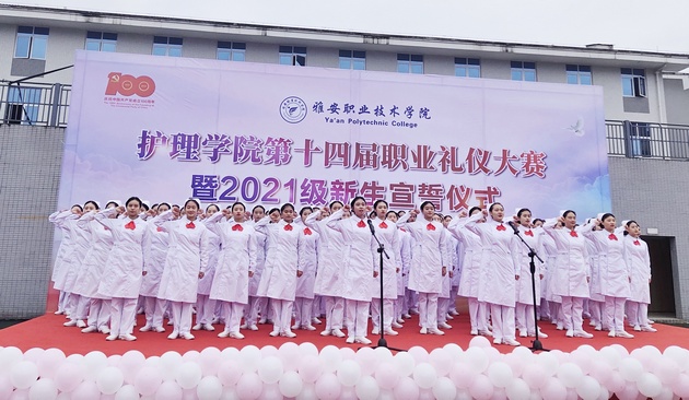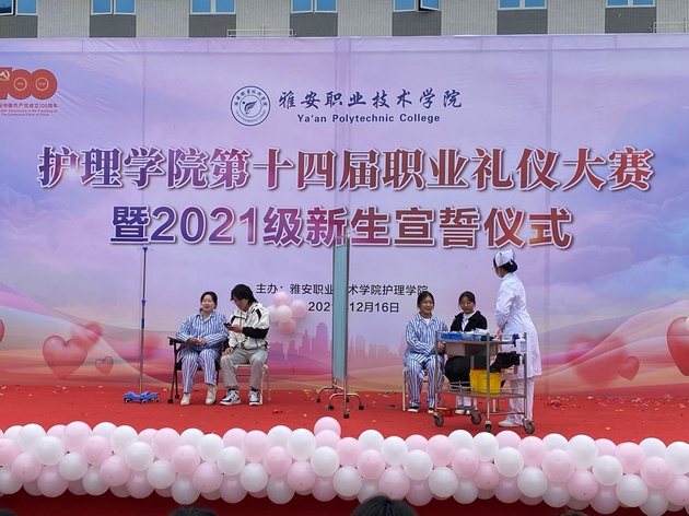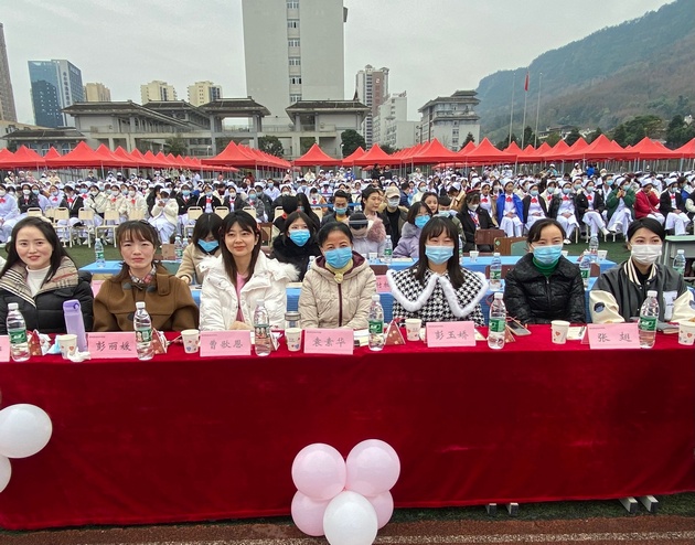 12月16日,云顶国际vip.888第十四届护理礼仪大赛暨护理新生宣誓仪式在青年路校区足球场隆重举行。护理公司党总支书记杨泽刚,经理王静,党总支副书记张翅,副经理李婧、张雪庆,团总支书记万黎应邀出席,陈俊、袁素华等7位教师担任评委。
