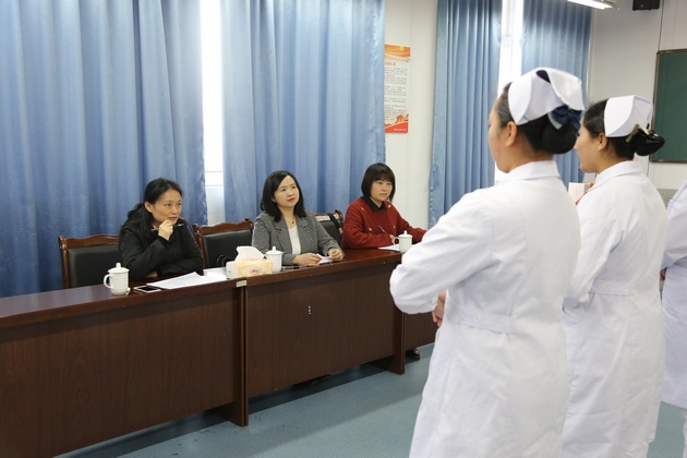 4月15日,成都市妇女儿童中心医院来公司选拔实习生,医院护理部副主任李慧敏,儿童神经内科护士长林振秀,儿童呼吸内科护士长黄园园担任面试官。本次面试工作在青年路校区实训楼607教室顺利开展,一共47名同学参加。