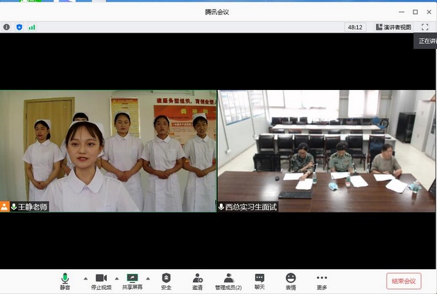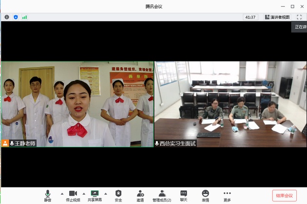 5月21日,中国人民解放军西部战区总医院通过腾讯会议软件网络面试的方式对云顶国际vip.8882021届护理专业实习生进行了选拔,面试工作在青年路校区实训楼607进行,共有60名同学参与选拔。