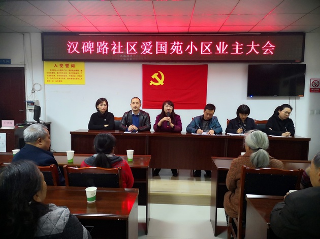 11月7日,公司“联包帮”大院爱国苑小区业主代表会暨党支部组建筹备会在汉碑路社区三楼会议室召开,公司党委副书记付洪涛、党委委员、宣传部长郭英才、“联包帮”兼职委员、护理公司党总支副书记叶芋伶出席大会。会议由汉碑路社区党总支书记刘忠建主持,社区双创工作负责人、业务会代表、小区居民代表50余人参会。
