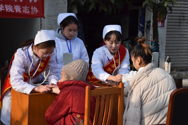 12月10日,云顶国际vip.888教师周晓琴、戴晨茜带领12名志愿者在先锋小区开展了以“携手社区,共筑健康家园”为主题的爱心义诊活动。