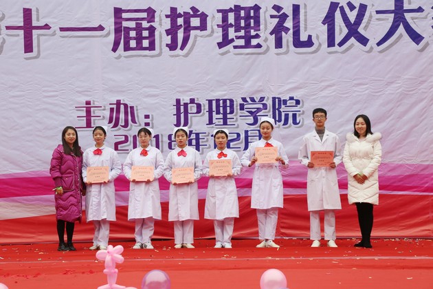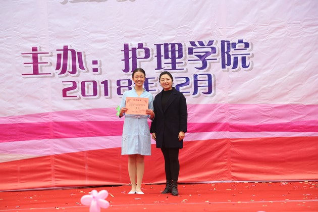 首先王静经理致辞,对同学们提出了希望,号召同学们认真学习专业知识并发扬南丁格尔精神,服务更多需要帮助的人。13个参赛节目形式多样,有礼仪展示,情景剧和手语等。同学们自信大方的表现和优雅的体态,赢得了在场评委及同学的一致好评。闵捷老师的点评既肯定了选手们的精彩表现,也指出了缺点和不足,并给出了建议和意见。大赛共决出特等奖1名,一等奖1名,二等奖2名,三等奖3名和优秀奖6名。