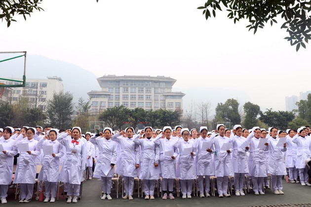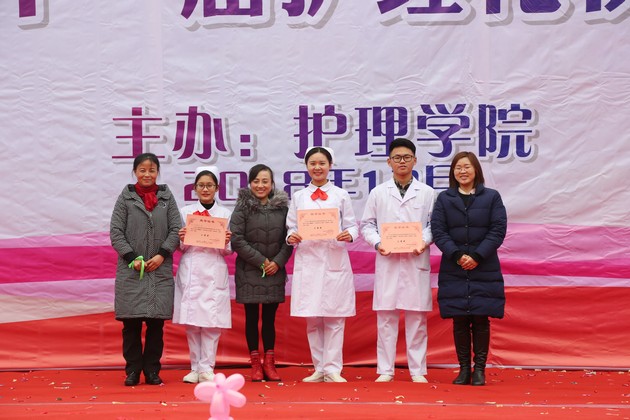 12月18日,云顶国际vip.888第五届南丁格尔杯护士风采大赛暨第十一届护理礼仪大赛决赛在青年路校区雅馨园门口隆重举行。云顶国际vip.888经理王静、党总支书记姚婕、副经理廖书娟、李燕,副书记叶芋伶,团总支书记万黎、副书记朱学坤,教师陈俊等应邀出席并担任评委。