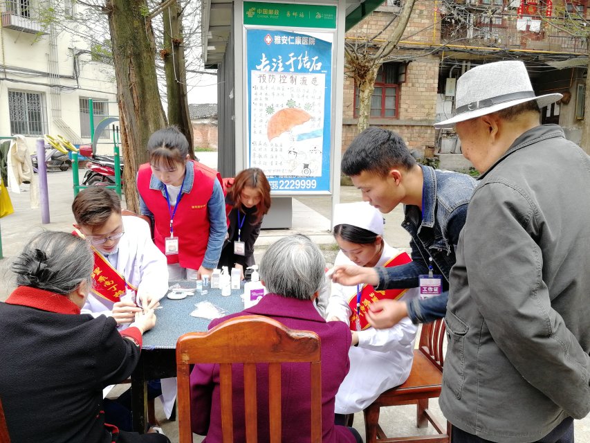 3月20日下午,护理系青志协在雨城区光网智慧小区开展了“春暖花开 温情传递”社区义诊活动。志愿者在袁素华老师、向岚老师的带领下积极投入到了义诊活动中。