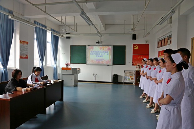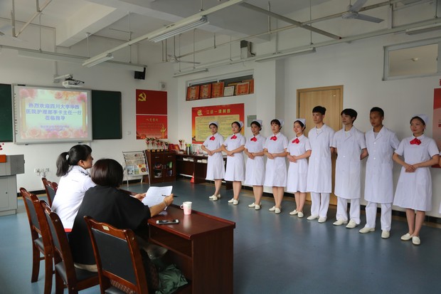 4月20日上午,四川大学华西医院护理部主任李卡教授,肝移植科护士长罗艳丽教授来护理系进行实习生面试选拔,108名同学参加面试。