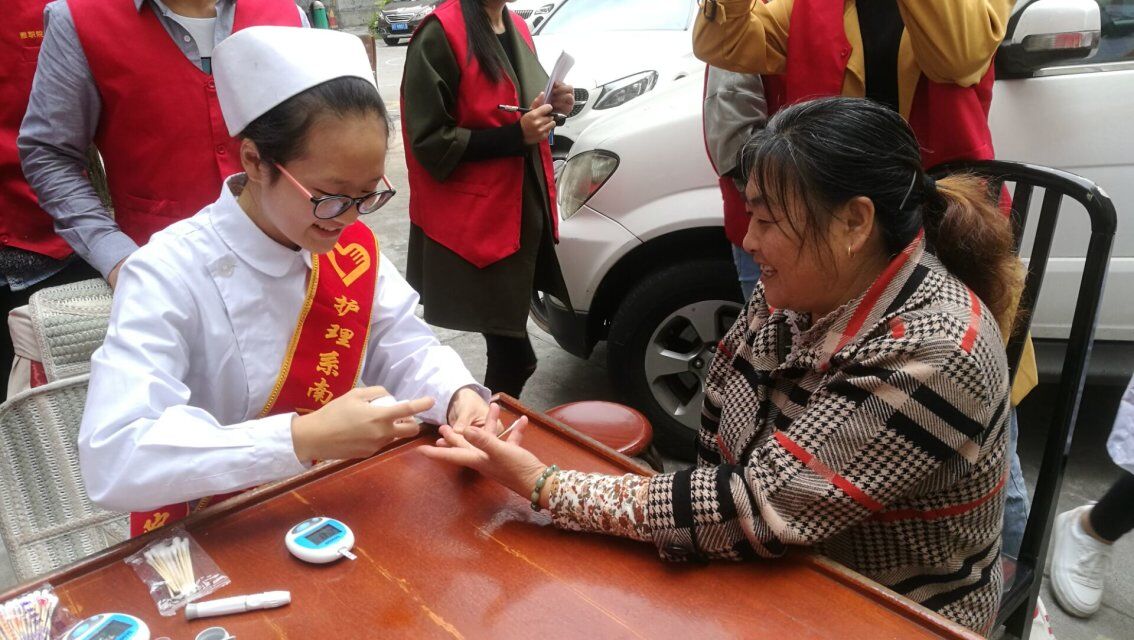 活动进行时,志愿者们迅速投入工作状态,小区居民也热烈地响应了活动的号召,义诊活动有序开展进行。在测量前,志愿者们仔细地询问了居民们的姓名和年龄,以便更好地结合居民身体状况做出准确的结论。此外,志愿者也对血糖血压数据进行了认真详细的记录,并告诉居民们如何有效改正生活中不良的饮食习惯。