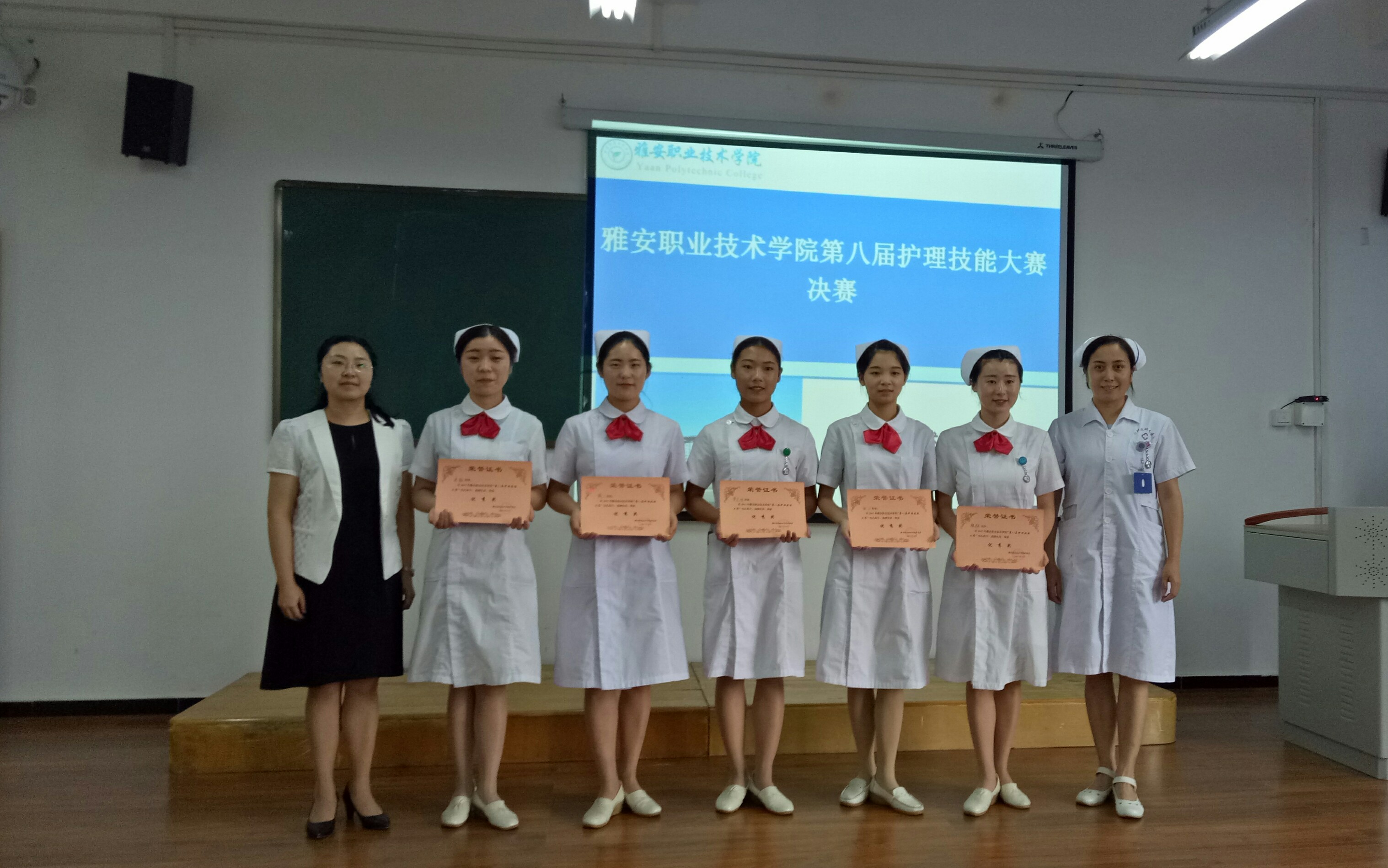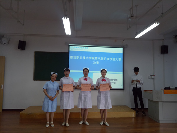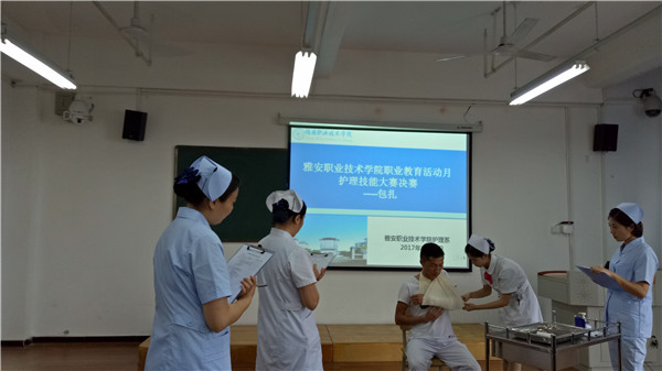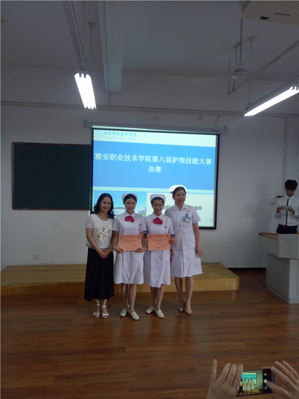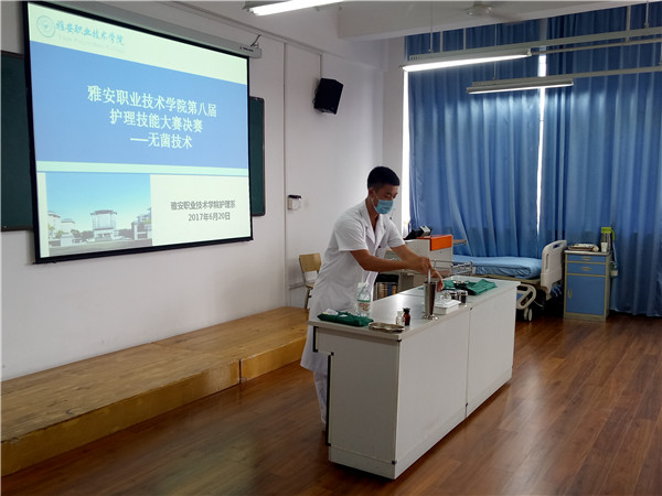 为提高同学们的操作能力, 6月20日中午,护理系在实训楼5、6楼举行了护理技能大赛决赛。公司附属医院护理部主任冯贤萍、护士长任琼,护理系教研室主任陈俊、实训中心主任李婧等担任本次比赛的评委。