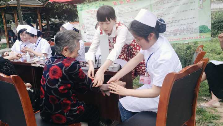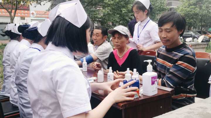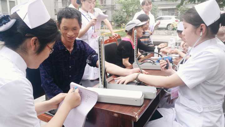 2017年5月2日,护理系袁素华、闵捷老师带领青志协志愿者走进汉碑路社区开展护理系“南丁格尔”爱心义诊活动。