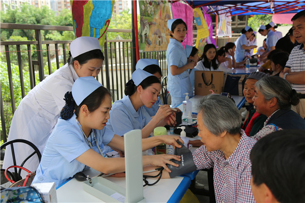 5月16日下午,护理系全体党员教师在党支部书记姚婕、副书记李敏的带领下到青衣雅苑小区开展“义诊进社区,服务暖人心”义诊活动。