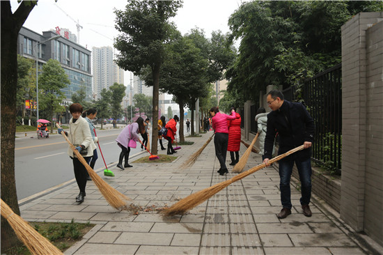 老师们沿着公司周围的街道进行清扫,发扬不怕脏不怕累的精神,在大街上扫地、捡垃圾、清理墙上粘贴的小广告及卫生死角。经过1个多小时的辛勤劳动,校园周边变得既干净又整洁。