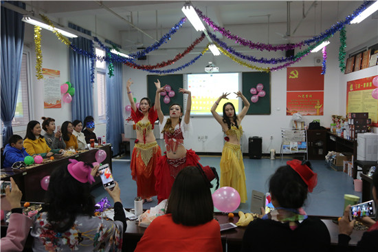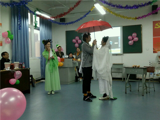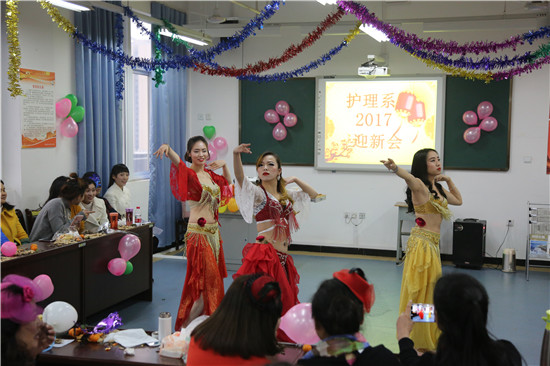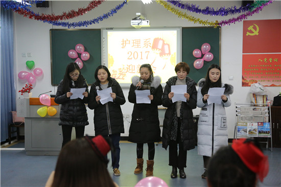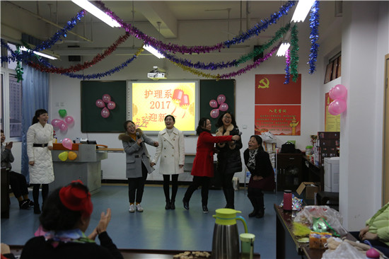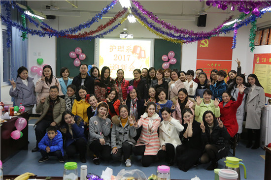 为丰富教职工文娱生活,在系主任王静、副主任廖书娟、党支部副书记李敏的组织策划下,12月28日16:00,护理系迎接新年化妆舞会在实训楼607隆重举行。舞会由闵捷、谢琳娜主持,全系教职工欢聚在此庆祝新年的到来。