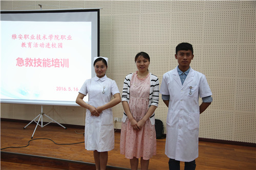 为继承和发扬南丁格尔精神,增强中员工的安全防范意识,让员工们初步掌握自救互救知识,提高自救互救技能。5月16日下午4:00由护理系张雪庆老师、护理专业员工组成的志愿服务团走进大兴镇雅安中学新校区,针对中员工开展“急救技能培训”讲座。