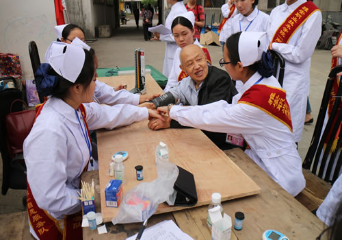 活动中,志愿者们为社区居民进行了脉搏、血糖、血压的测量,并结合自己所学专业的临床知识给老 人们讲解高血压、高血糖等高发疾病的预防保健知识,除此之外还进行了“关于社区老年人生活质量”调查问卷的收集,以便以后能够根据老人们的需要来提高我系志愿者服务活动的质量。