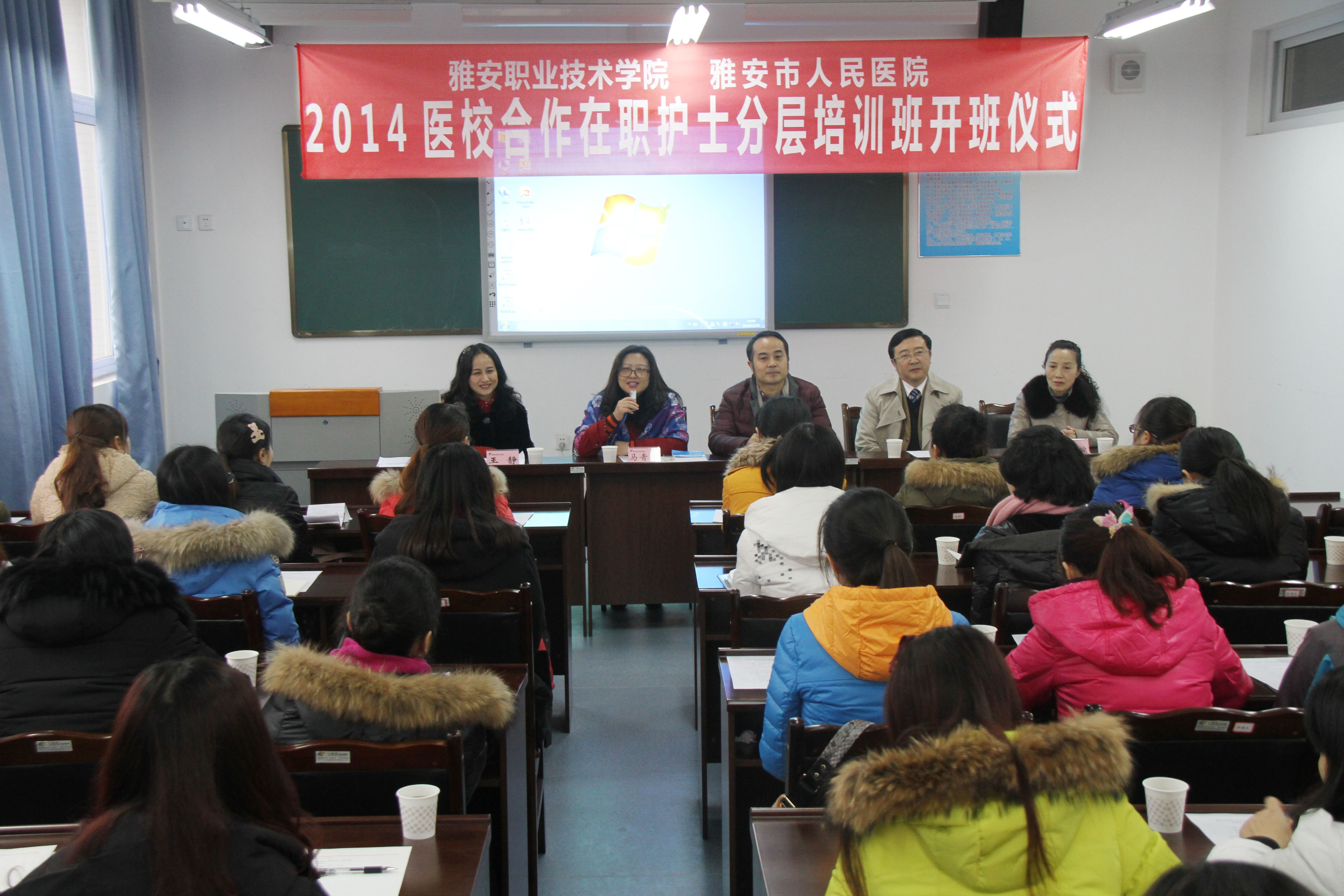 12月26日下午两点半,“云顶国际vip.888、雅安市人民医院2014医校合作在职护士分层培训开班仪式”在青年路实验实训楼607教室隆重举行。公司张大凯书记、雅安市人民医院邱雄经理、四川省人民医院重症监护室马清华护士长,雅安市人民医院护理部黄丽琼护士、我系部门负责人等与公司附属医院和雅安市人民医院N2级别的45名护士参加了开班仪式。系主任王静主持开班仪式。