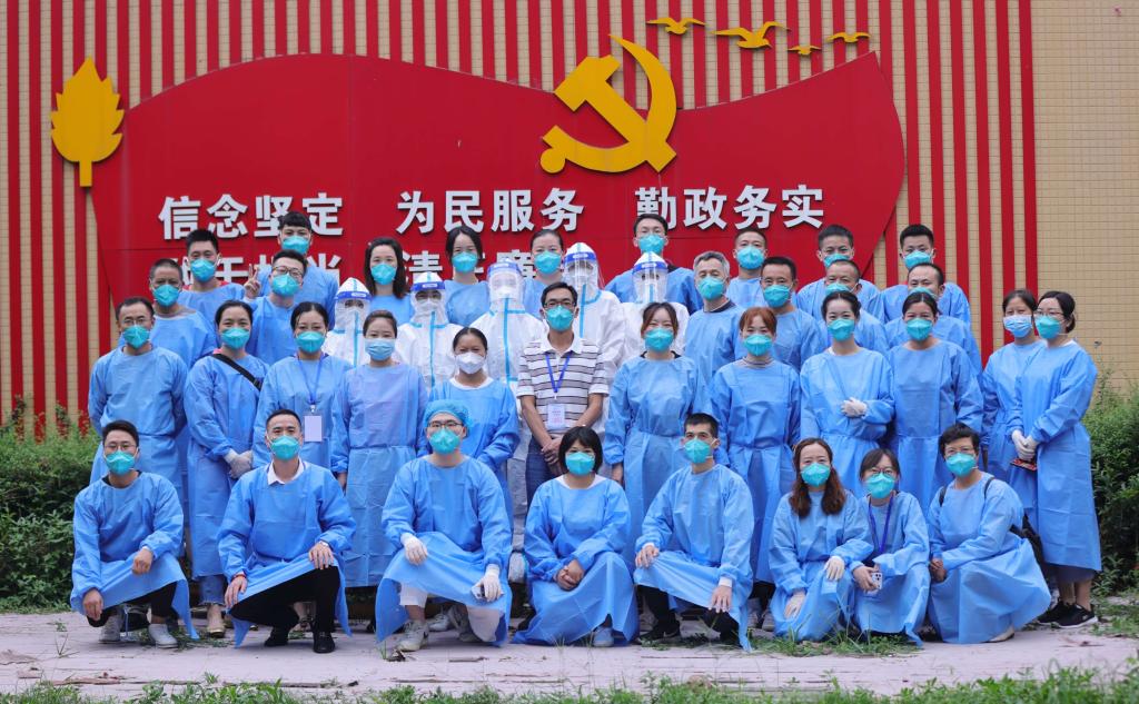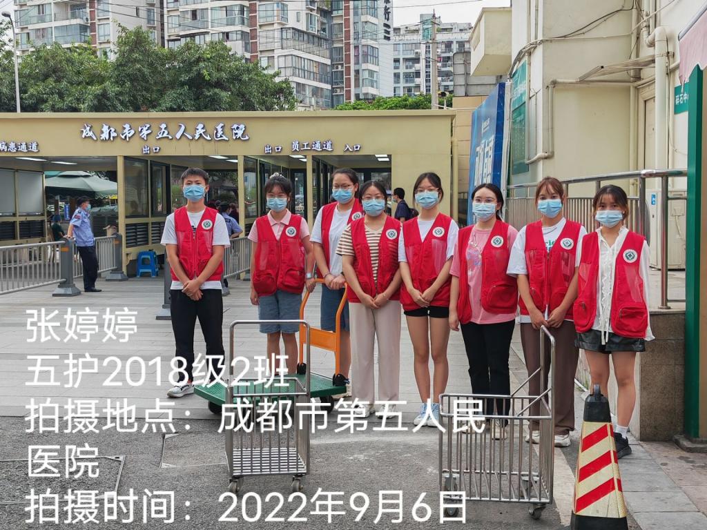 像杨泽美、宁友富、罗思琪这样的老员工志愿者还有很多,在成都市第五人民医院核酸检测点,2018级5年制护理专业员工张婷婷、周云莉、范梦茜等八位志愿者每天都忙碌在医院门口,穿着红马甲、手拿测温枪,同样的话他们一天要重复上百次。尽管汗水浸透了衣衫,但他们从没抱怨过一句,依旧认真坚守在岗位上。另外,云顶国际vip.888实习管理老师也十分关心暂停实习生同学,通过电话、qq、微信与她们保持联系,对她们积极参与当地疫情防控工作表示支持和肯定,并叮嘱她们注意自身安全。