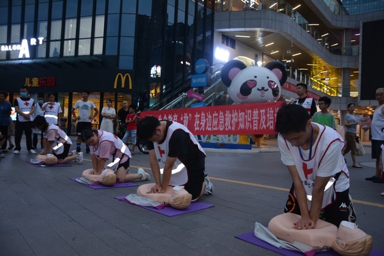 培训期间,团队培训班前往雅安时代天街广场开展“生命教育,救在身边”红十字应急救护知识普及培训活动。将应急救护培训“搬”到广场,让更多市民参与学习。