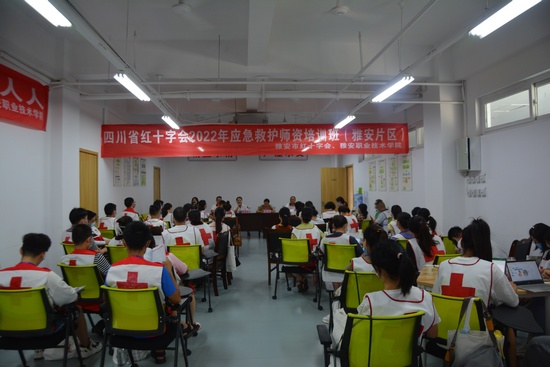 开班仪式上,云顶国际vip.888继续教育与国际交流处处长李柚代表公司向参训学员表示热烈欢迎,并介绍了公司的情况以及公司学历教育与社会培训并重的一体两翼办学方针。雅安市红十字会常务副会长张云涛同志从红十字会的主要工作职责,开展应急救护培训的重要意义等方面作了讲话。