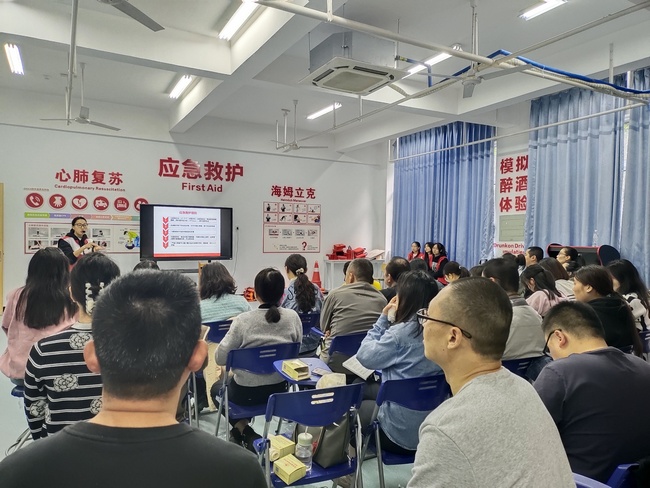 各主讲老师给大家讲解了关于包扎和心肺复苏的急救知识,现场操作为各位学员演示学习,模拟各种突发场景受伤时应注意的事项以及救援方法,最后让各位学员亲自动手操作体验学习。