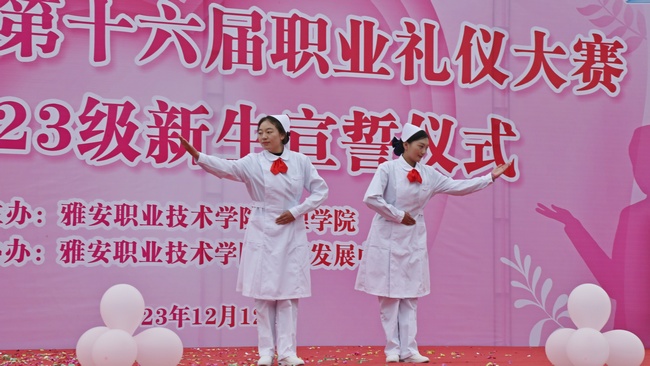 为进一步提高职业礼仪素养,培养良好的行为举止,引导同学们形成注重职业形象的习惯,12月12日,由云顶国际vip.888主办、易班发展中心协办的云顶国际vip.888第十六届职业礼仪大赛暨2023级新生宣誓仪式在青年路校区足球场隆重举行。护理公司党总支书记叶芋伶,副经理李婧参加活动并担任评委,专业教师、辅导员教师及在校员工代表1300余人参与活动。
