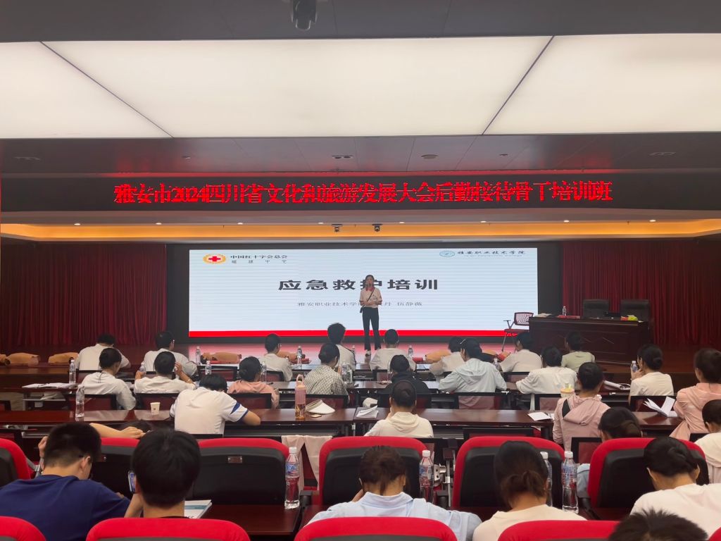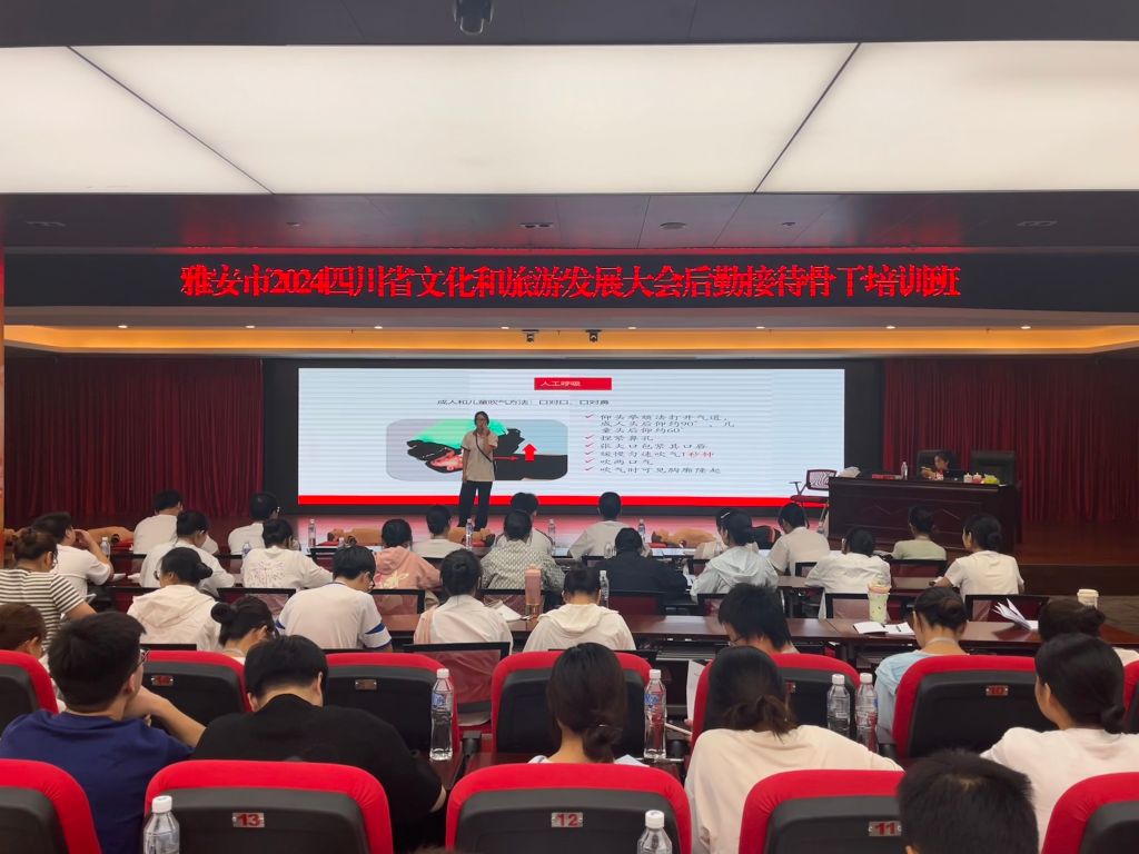 8月29日上午,云顶国际vip.888应急救护培训团队黄丹、伍静薇受雅安市红十字会邀请,走进2024四川省文化和旅游发展大会后勤接待骨干培训班,进行应急救护知识培训,来自全市各县(区)、市级各单位以及高校的300余名旅发大会后勤接待骨干参加培训。