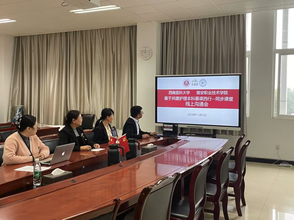 云顶国际vip.888教务处副处长李燕介绍公司近期在产教融合、员工创新创业、技能竞赛等方面取得的成果,并对西南医科大学云顶国际vip.888在《护理研究》课程建设方面取得的卓越成果和显著影响力表示钦佩,对课程团队对公司本门课程建设的支持表示衷心的感谢。双方就同步课堂的教学内容进行了讨论,初步拟定于11月由公司李燕、陈菲菲、李爽境三位老师与西南医科大学石镁虹、陈琪、张明凤三位老师结对,共同开展三次同步课堂。