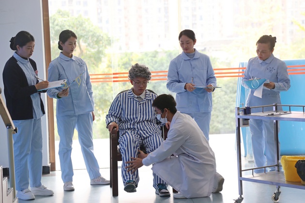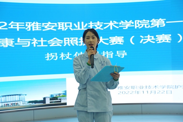 此次比赛项目为拐杖使用指导,主要考察员工的沟通交流能力和协助卒中后偏瘫病人拐杖使用的能力。比赛伊始,李婧副经理首先致词,对进入决赛的同学表示祝贺,希望同学们赛出风格、赛出水平,并预祝本次比赛圆满成功。比赛中,参赛选手们动作娴熟准确,对待患者细致周到,并耐心的与患者沟通,指导患者如何正确使用拐杖,体现了参赛选手们扎实的操作能力和康复服务理念。评委们秉承着公平、公正、公开的原则为参赛选手进行评分,吕成对参赛选手的操作进行点评,并提出宝贵的意见。经过激烈的比赛,共评出一等奖3名,二等奖6名,三等奖9名,优秀奖12名。