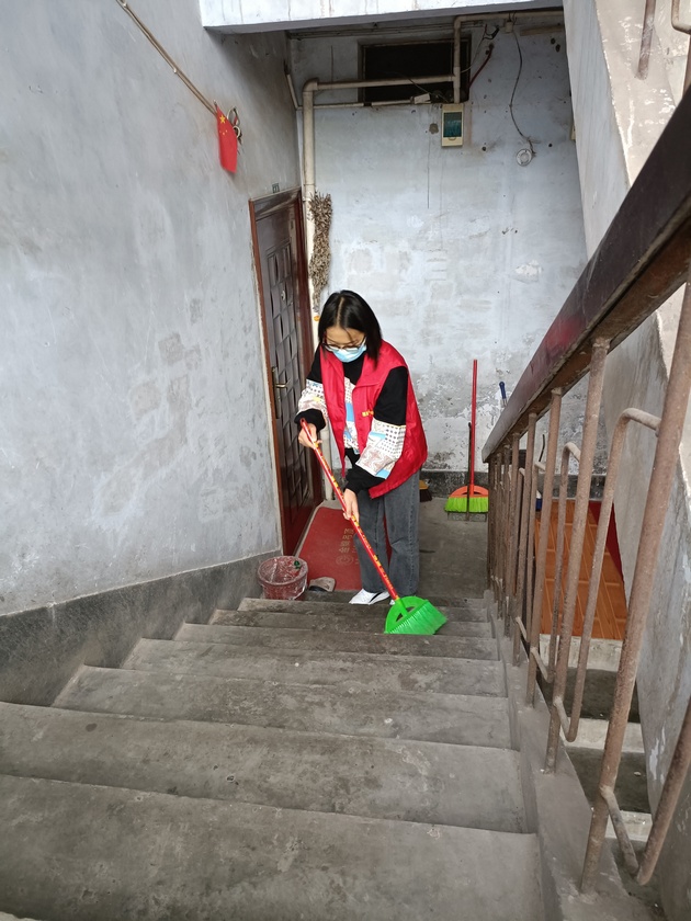 志愿者每两人一组,在社区居民的带领下认真打扫了社区的各个角落。志愿者们对楼道间的灰尘、墙上的小广告以及道路中的垃圾,进行了彻底的清理,经过志愿者及社区居民四个小时的努力下,社区环境面貌焕然一新。