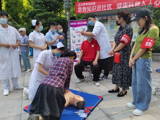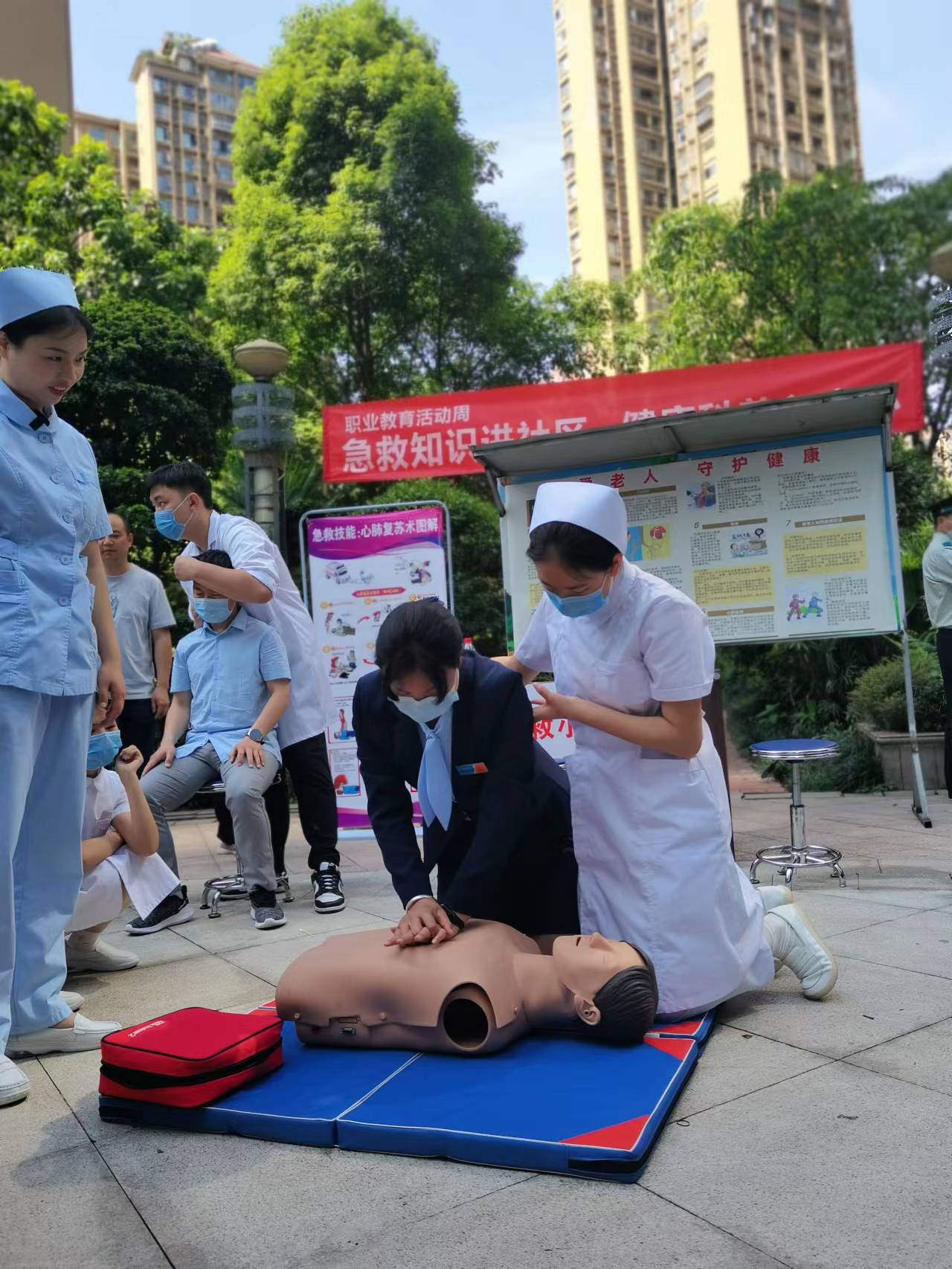 5月10日,云顶国际vip.888“南丁格尔”志愿服务队联合汉碑社区第一江岸小区党支部在第一江岸小区开展了以“急救知识进社区,健康科普入人心”为主题的爱心义诊活动。此次活动由云顶国际vip.888副经理张雪庆、副经理李婧、教务处副处长李燕带队,30余名师生参与。
