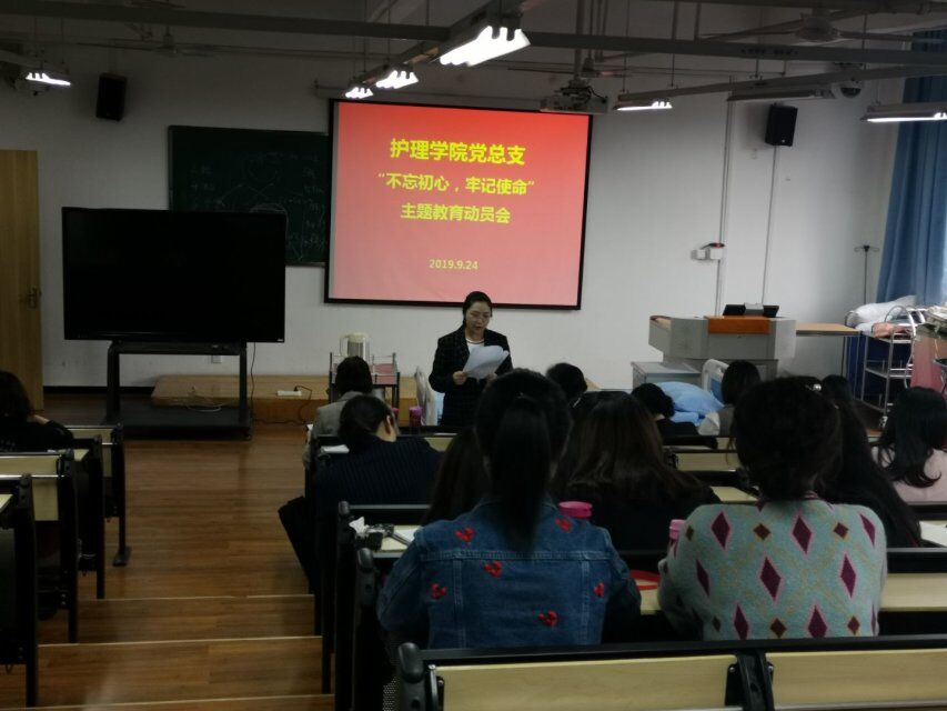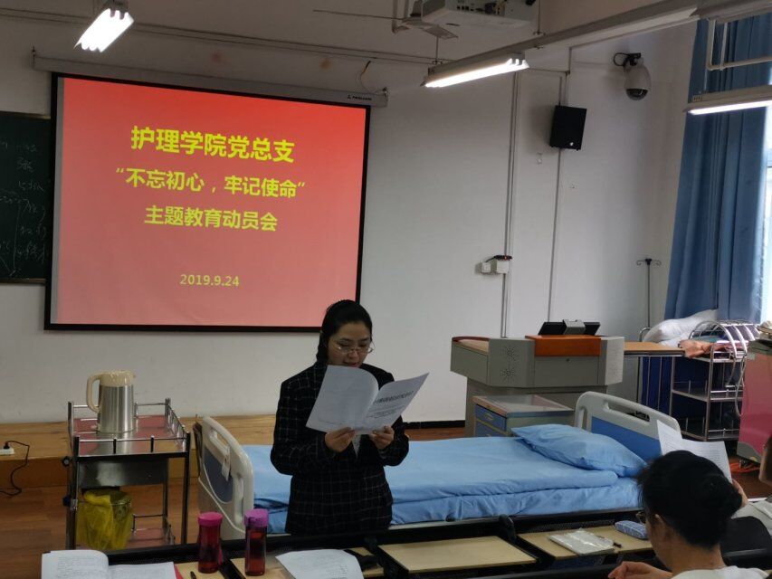 9月24日,云顶国际vip.888在青年路校区实验实训楼506开展“不忘初心,牢记使命”主题教育动员会,护理公司党政班子、全体教职工参加会议。