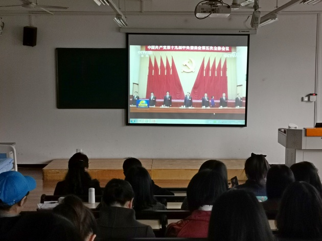 党的十九届五中全会召开后,护理公司党总支认真组织教职工学习贯彻会议精神。