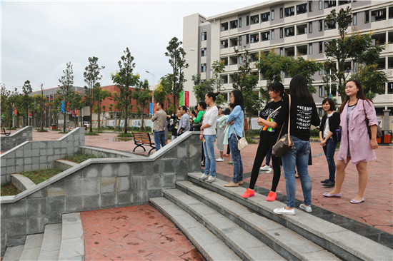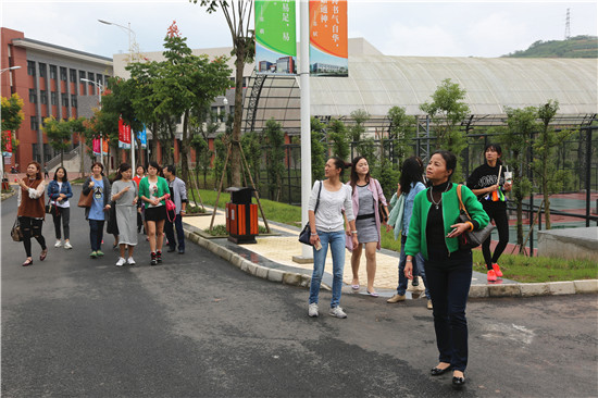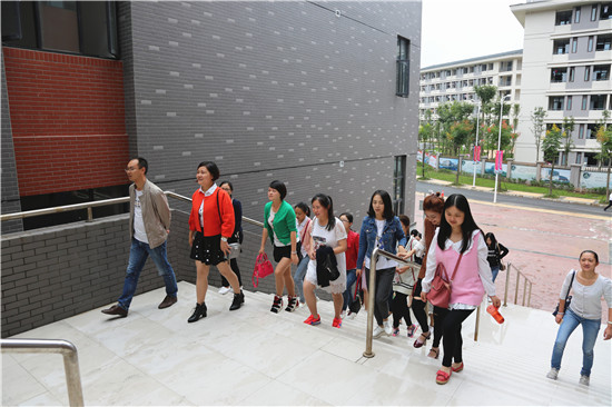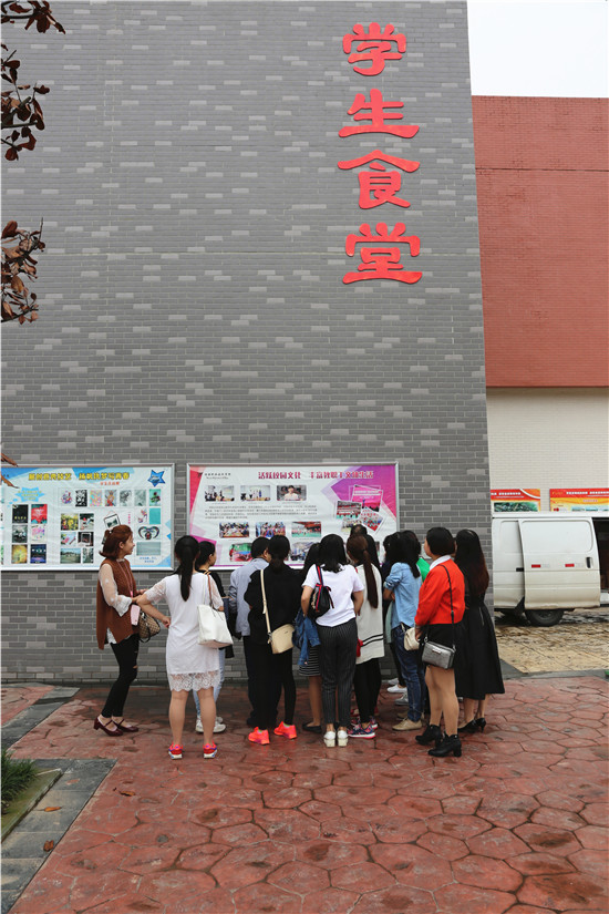 当校车抵达经开区校区时,同志们都被眼前气派的建筑所吸引。大家依次有序地参观了辅导员办公室、员工综合管理科、员工活动中心、员工宿舍、教学楼、食堂、图书馆和操场。新校区崭新的建筑、完善的设施,令大家纷纷赞叹不已。宽敞的操场上恰逢新生军训演练,同学们标准的军姿、潇洒的步伐让我们看到了公司新的起点和希望。最后,全体党员同志在图书馆前合影留念。