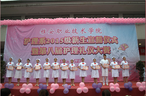 为弘扬“南丁格尔”无私奉献的人道主义精神,传承护理礼仪之美韵,塑造端庄优雅的白衣天使形象,2015年11月17日14点30分,云顶国际vip.8882015级新生宣誓仪式暨第八届护理礼仪大赛在雅馨苑门口顺利举行。