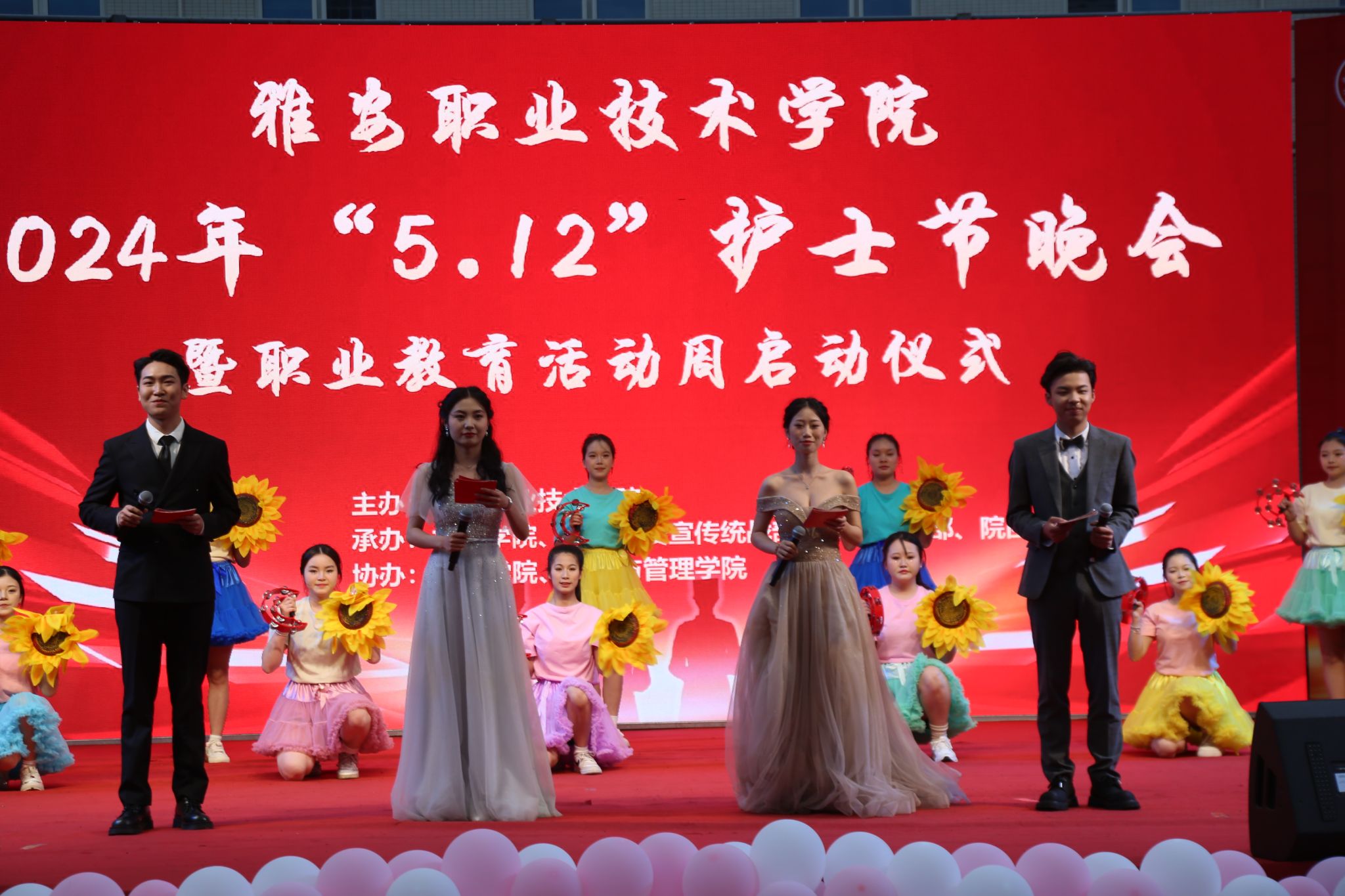 5月12日,公司2024年“5.12”护士节晚会暨职业教育活动周启动仪式在青年路校区体育场举行,公司党委书记李春模,党政班子成员及护理师生3000余人参加活动。活动通过视频方式在线上同步直播。